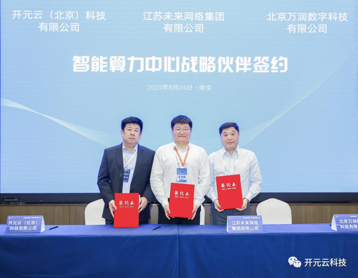 江苏未来网络集团、开元云(北京)科技有限公司、北京万润数字科技有限公司共同签署“智能算力中心战略合作协议”。三方在未来将形成资源互补、共建共享的合作模式,旨在构建安全可信的算力网络基础设施底座达成战略合作。